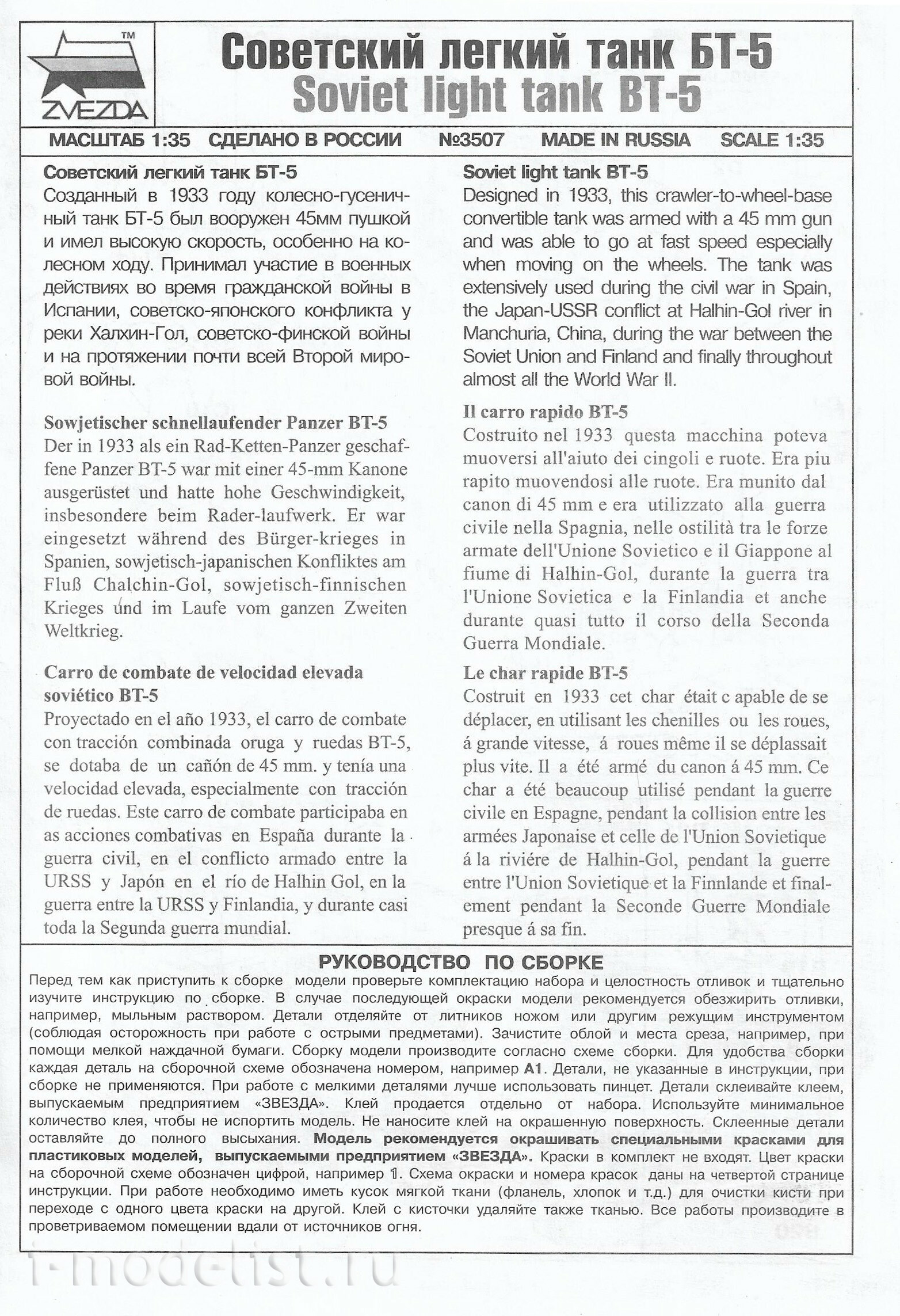3507 Zvezda 1/35 Soviet light tank BT-5