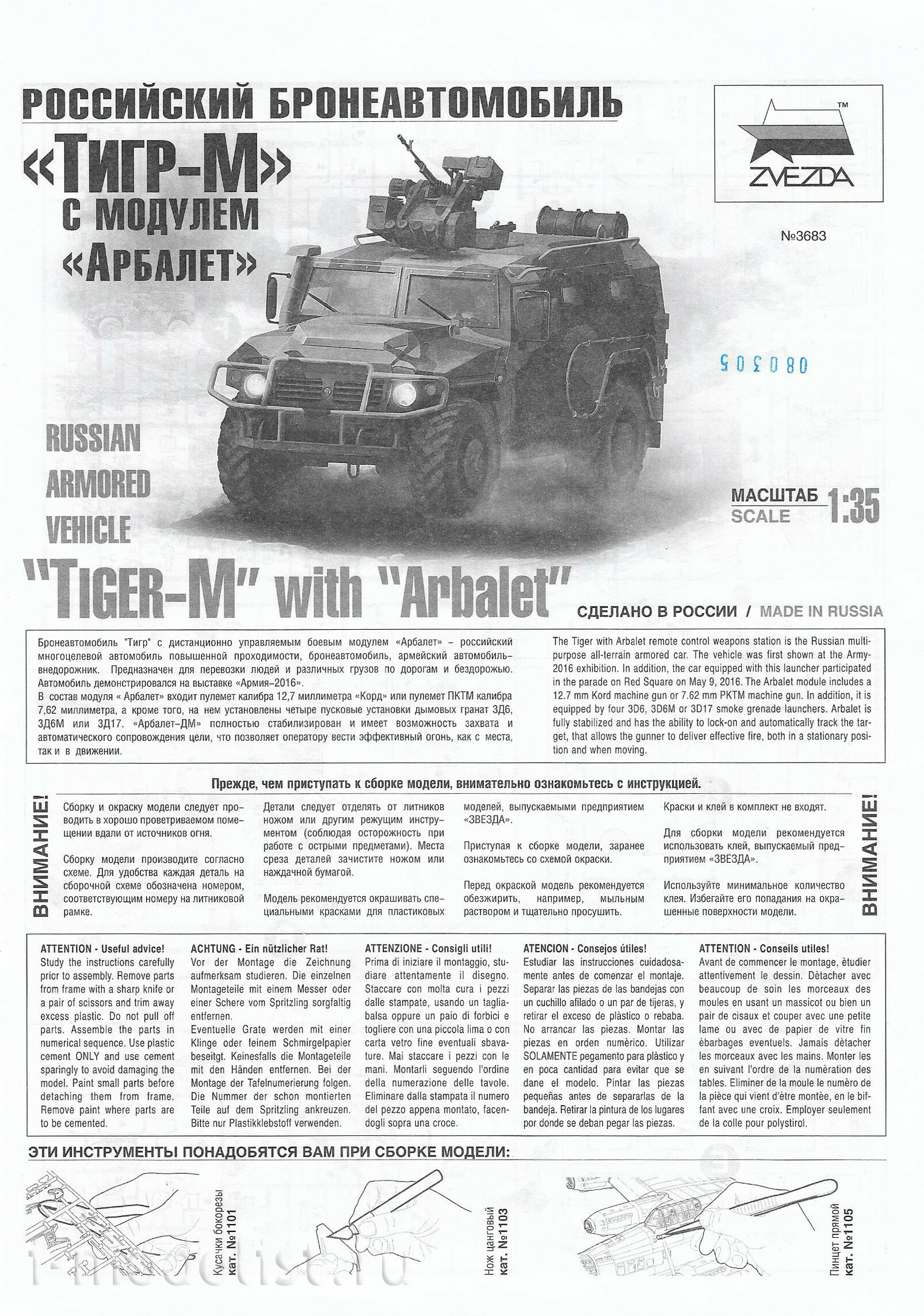 3683 Zvezda 1/35 Russian armored car GAZ "TIGER-M" with module "Crossbow»