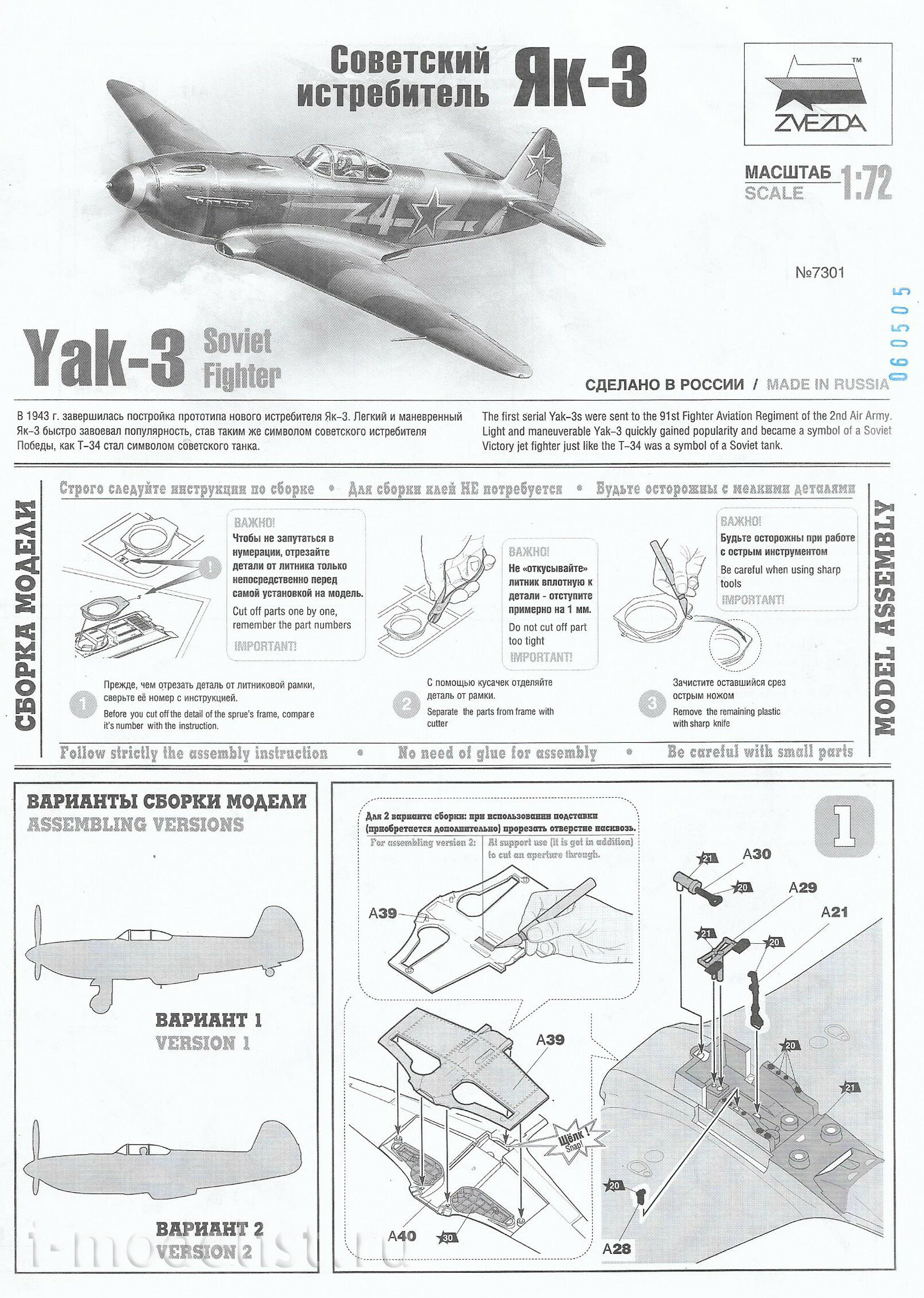 the Light and powerful Messerschmitt BF - 109 was the pride of the German Luftwaffe and a dangerous opponent for Soviet pilots. For a long time this aircraft was not equal. Until, in 1943, a talented Soviet designer did not create a Yak - 3. Lighter and faster than the Messer, with increased combat power, the Soviet Yak - 3 quickly gained an advantage in the sky and was successfully used in any air operations. This invention was a turning point that changed the course of the war. C The kit includes: - Scale model of the fighter Messerschmitt BF - 109 , consisting of 42 parts on a 1/72 scale; - Scale model of the Yak - 3, consisting of 46 parts on a 1/72 scale; - Brush and Paint (4 colors); - Assembly instructions; - Colorful brochure with interesting facts about the history and combat use of these fighters.